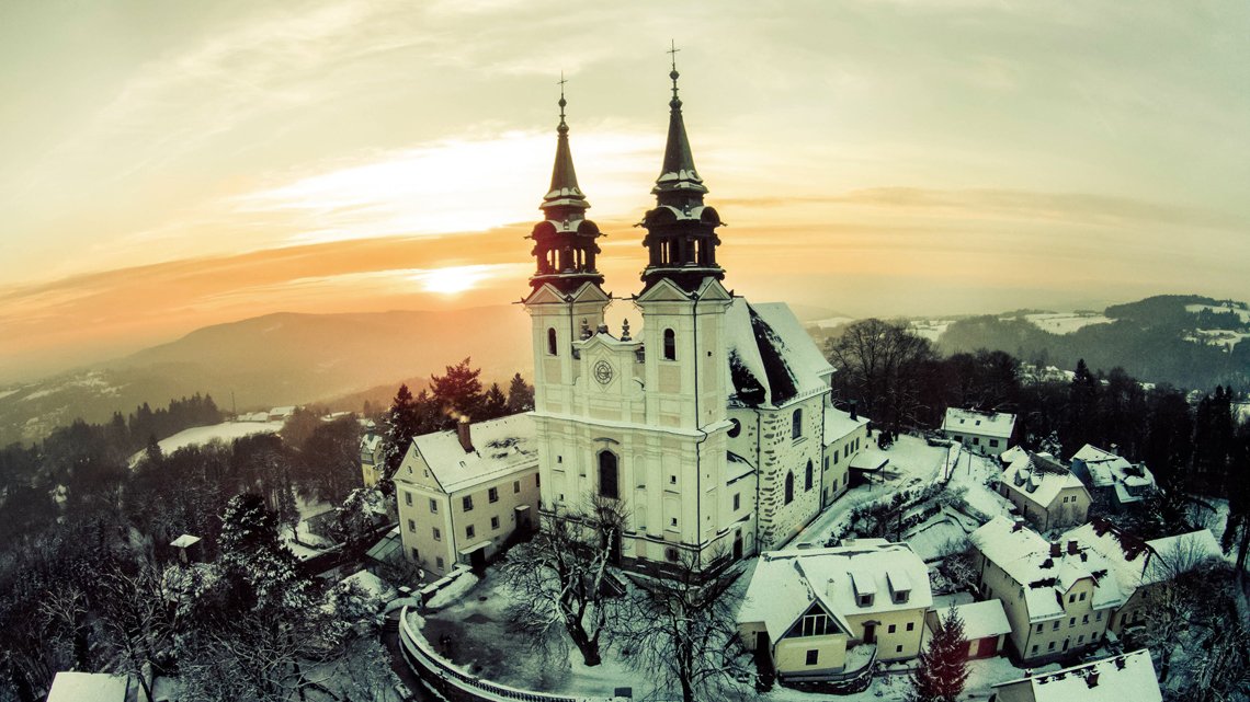 Auch im Winter klettern die typisch beigefarbenen Wagen auf knappen vier Kilometern Streckenlänge 250 Höhenmeter bergwärts. Und erschließen eines der beliebtesten Naherholungsgebiete der Linzer. Am höchsten Punkt des Pöstlingberges thront die Wallfahrtskirche mit ihren zwei Türmen. Die Aussichtsplattform gibt an Tagen mit klarer Winterluft das Panorama über ganz Linz und bis weit hinaus ins Umland frei. Vor allem kommen aber die Kinder am Pöstlingberg auf Ihre Rechnung: Im Advent können die Kleinen noch einmal die Zwergerl in der Grottenbahn mit dem Drachenzug besuchen, bevor die Zipfelmützen in den Winterurlaub gehen. Viel wichtiger ist im Winter aber ohnedies, die Rodel mitzunehmen. Denn am Pöstlingberg gibt es eine ganze Reihe von Wiesen und Hängen, die bei entsprechender Schneelage temporeiches Wintervergnügen versprechen. Nach ein paar Abfahrten ist dann auch der Nachwuchs froh, dass der Kirchenwirt Labe verspricht.